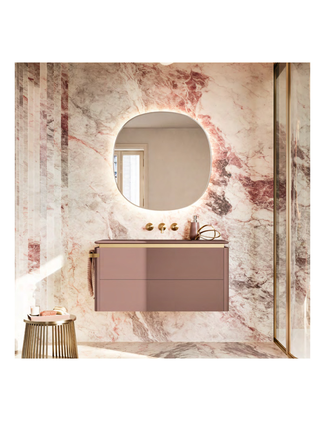 Il mobile bagno Arbi Almond 05 è realizzato in pannelli laccati di alta qualità, con lavabo integrato in Tekno e specchiera LED, combinando design raffinato e resistenza nel tempo.
