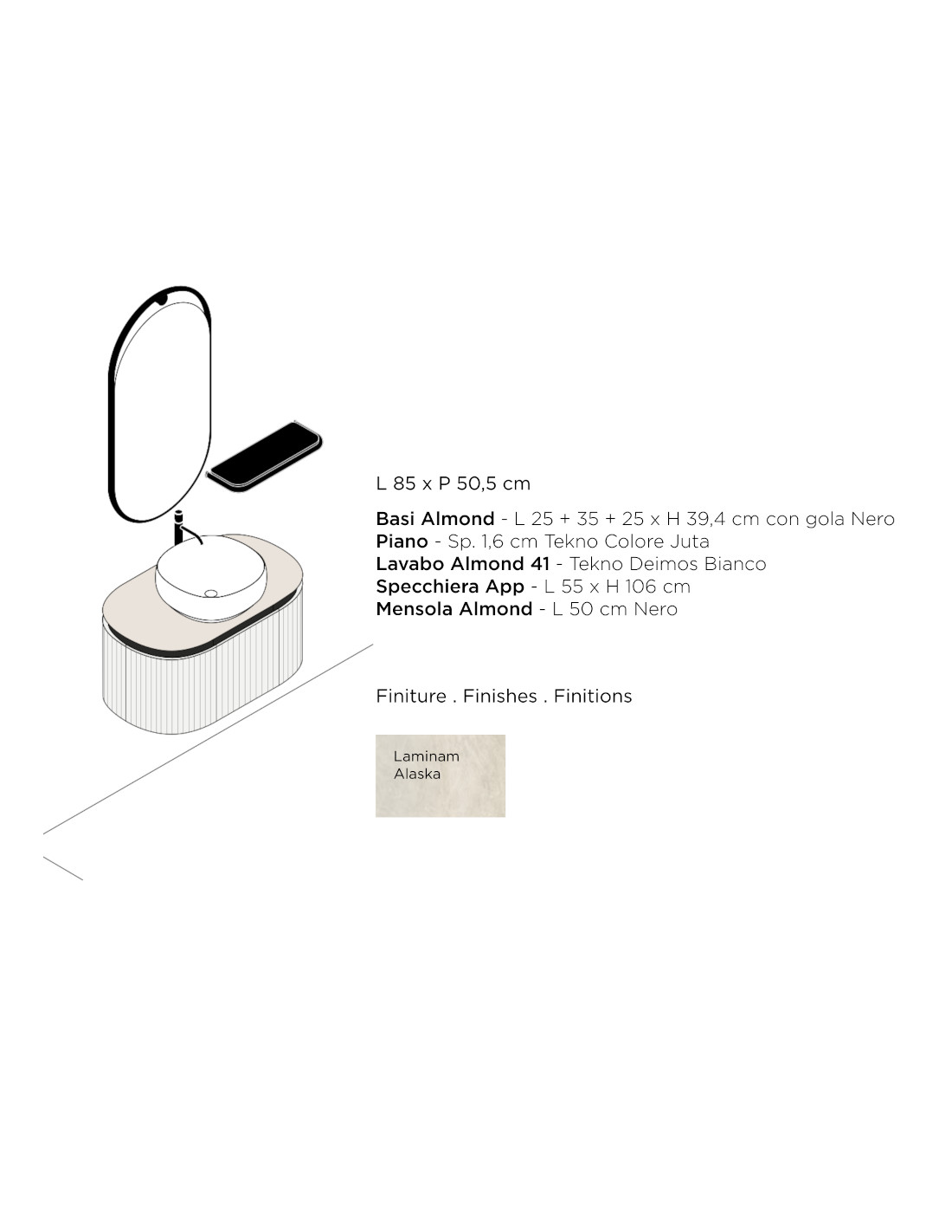 Arbi mobile bagno ALMOND 01 Laminam Alaska – L 85,2 x P 50,5 cm
