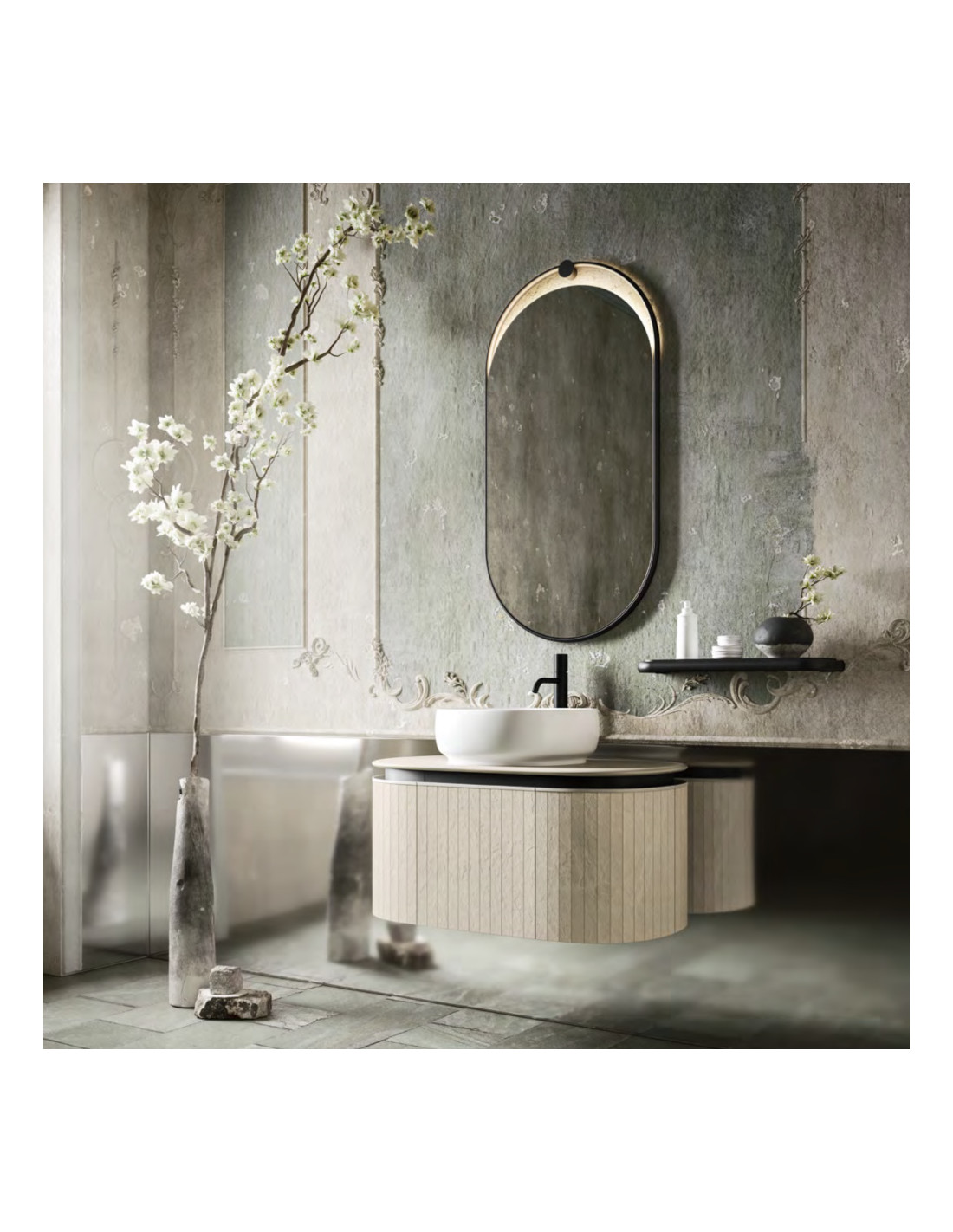 La composizione Arbi Arredobagno Almond 01 interpreta il bagno moderno attraverso volumi eleganti e linee dolcemente arrotondate. Un’estetica contemporanea che dialoga con la sensazione di calma e purezza, trasformando lo spazio in un ambiente accogliente e di grande armonia.