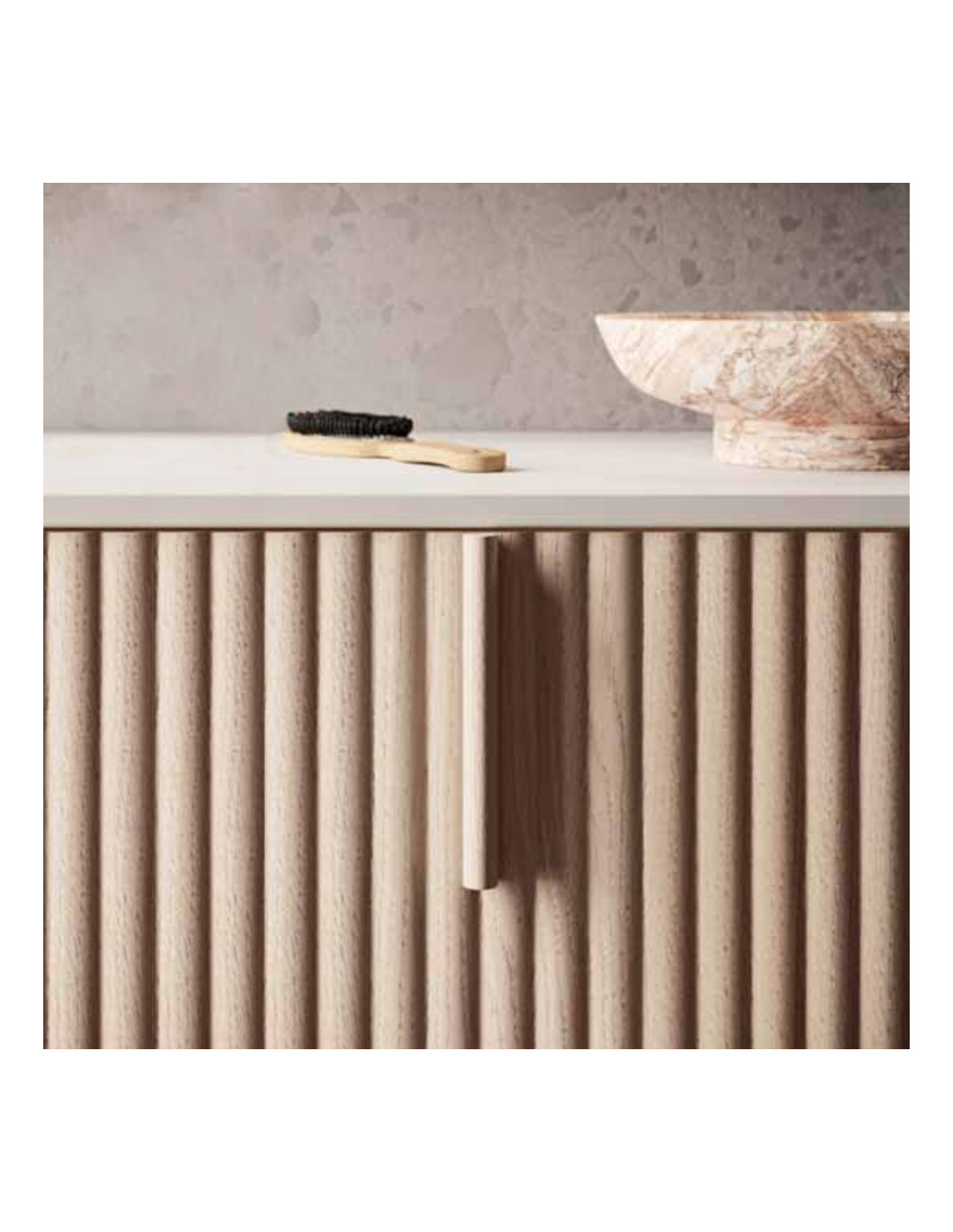 • Maniglia: Wave di serie in legno massello in tinta con la base