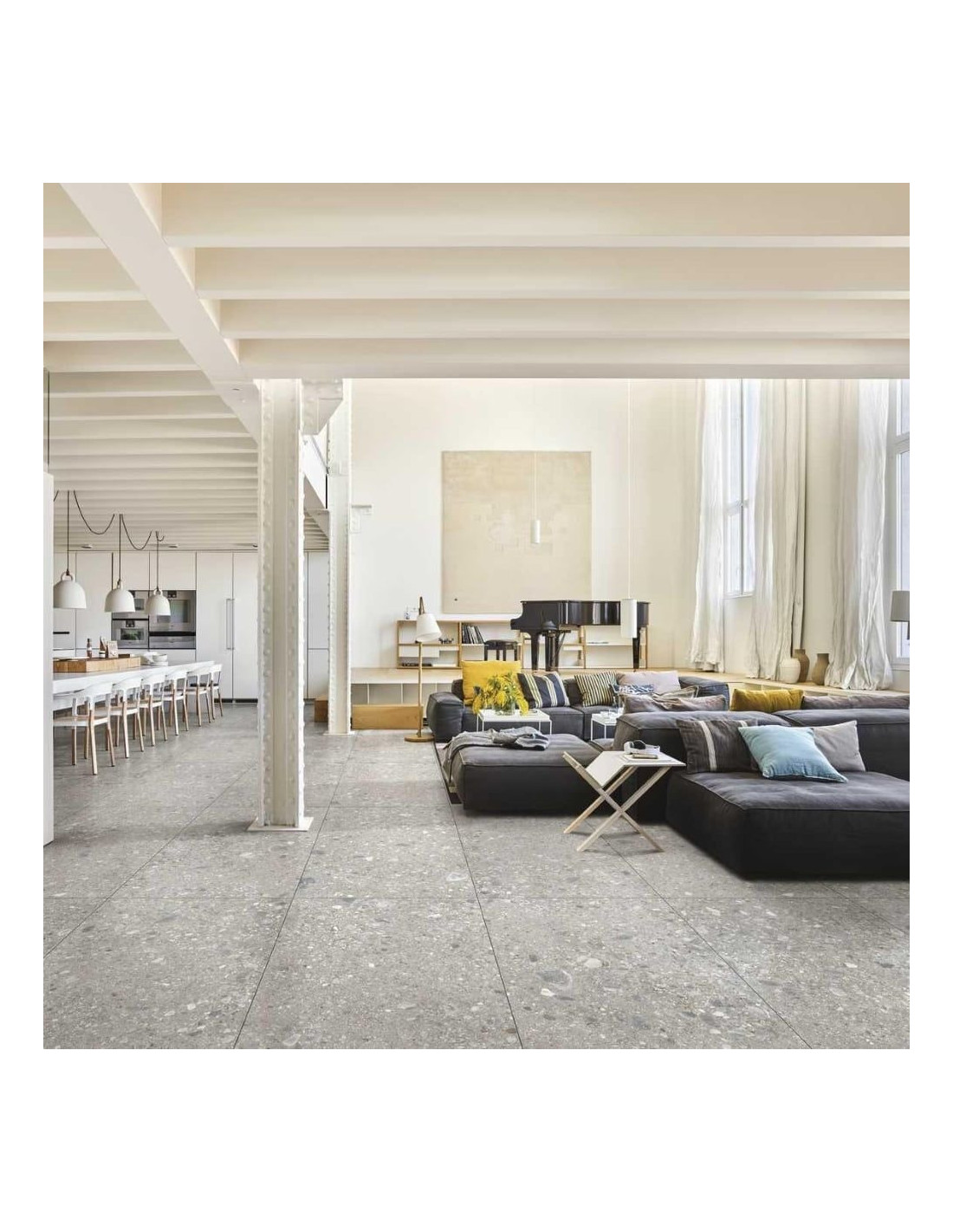Le piastrelle Marazzi Mystone Ceppo Di Gre Grey 60X60 rettificate in gres porcellanato effetto pietra con finitura matt uniscono design e prestazioni: assorbimento < 0,5%, alta resistenza a usura e macchie, manutenzione semplice. Perfette per pavimenti interni e rivestimenti coordinati.