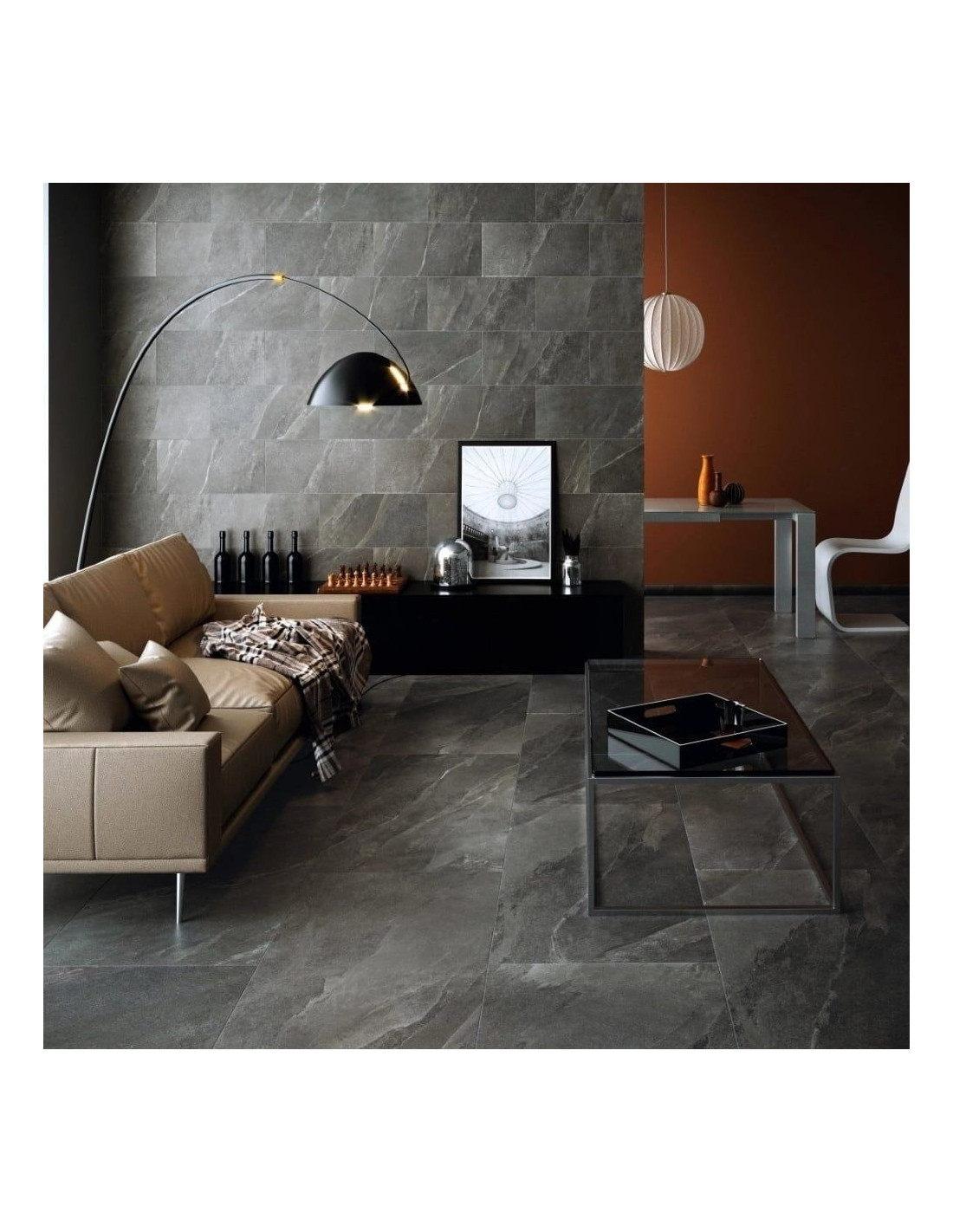 Le piastrelle Marazzi Mystone Ligure Antracite 120X120 rettificate in gres porcellanato effetto pietra con finitura matt uniscono design e prestazioni: assorbimento < 0,5%, alta resistenza a usura e macchie, manutenzione semplice. Perfette per pavimenti interni e rivestimenti coordinati.