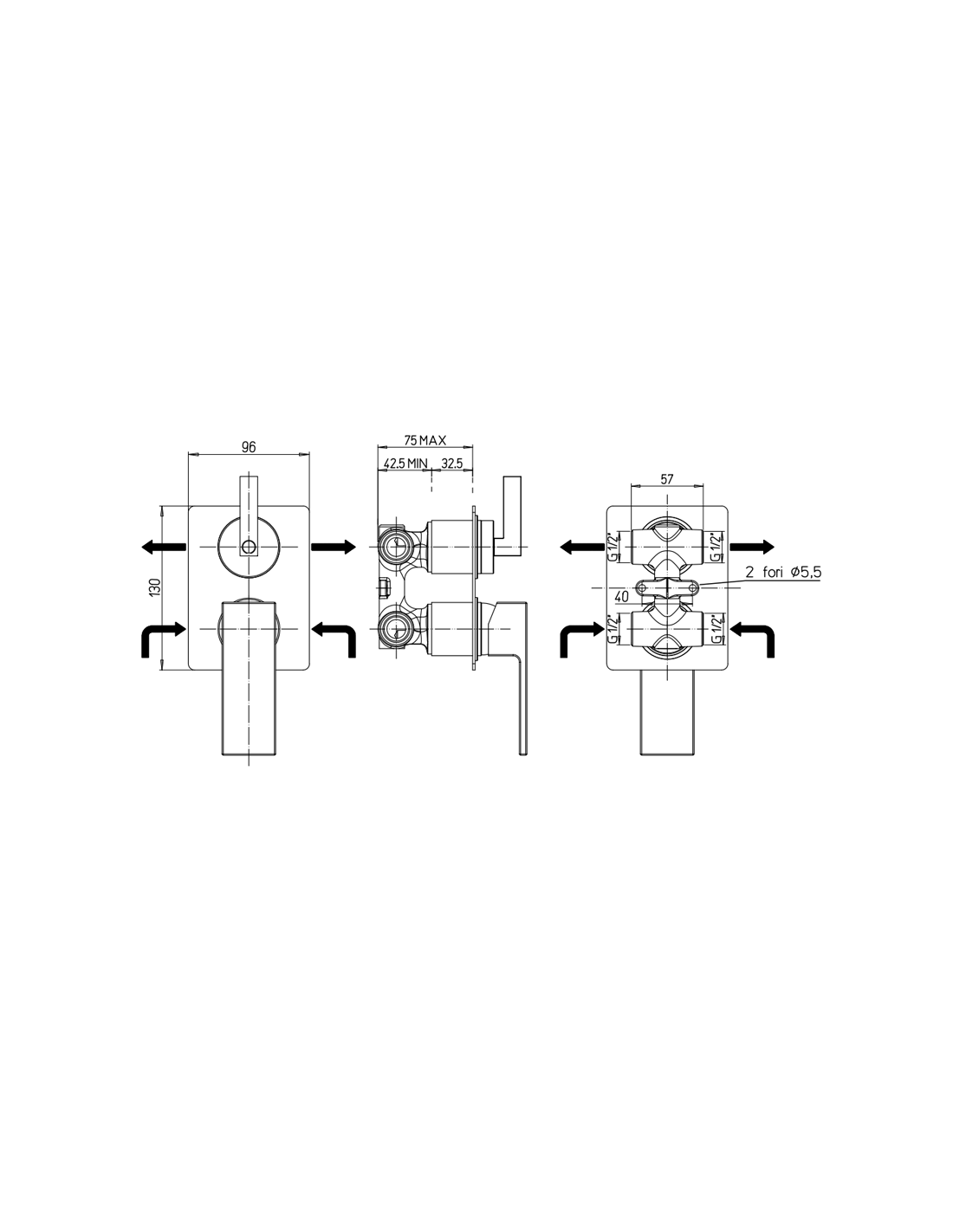 - Tipologia: Doccia incasso con deviatore rotativo 2 uscite