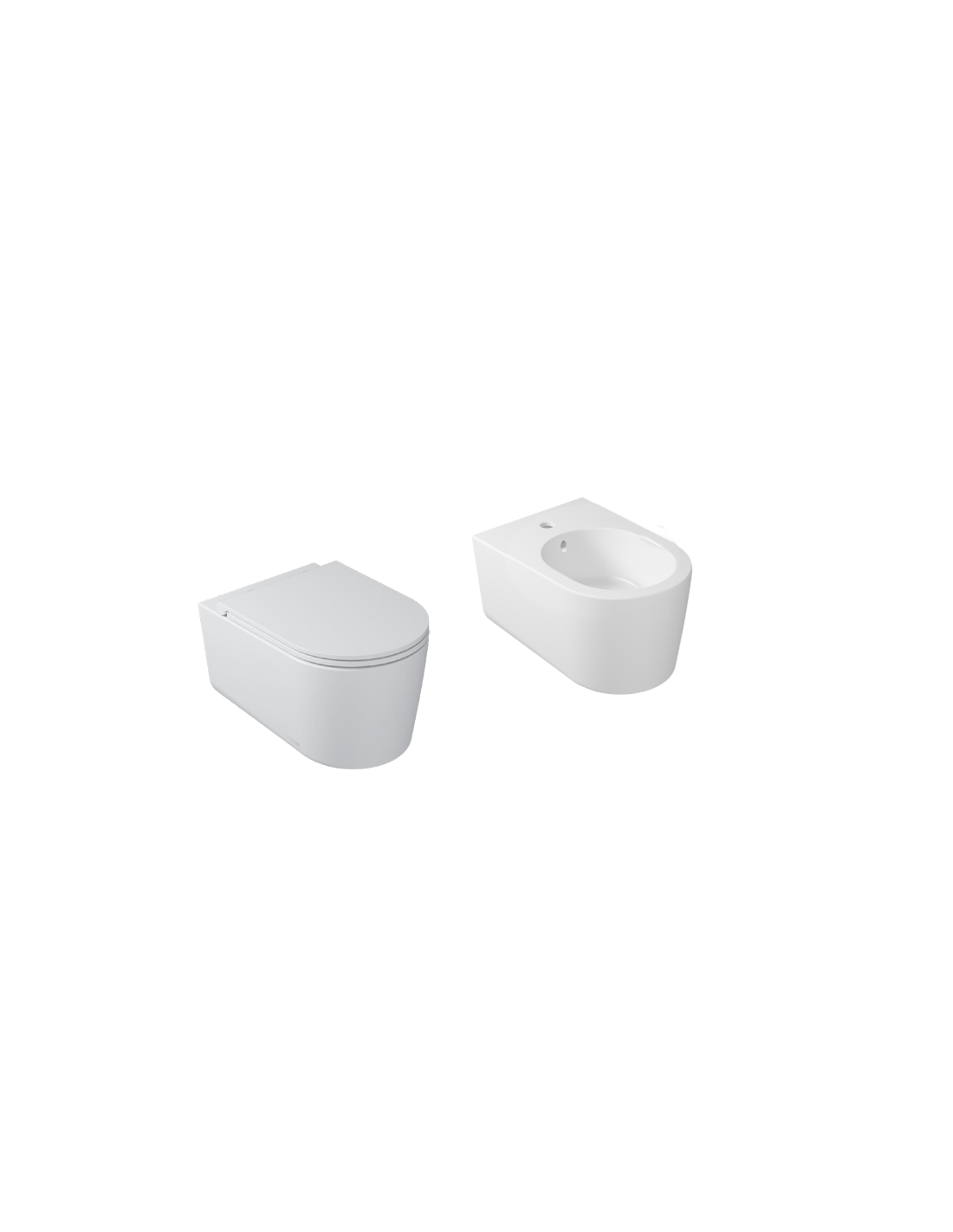 Il pacchetto comprende il vaso sospeso, il bidet sospeso e il coprivaso rallentato, tutti coordinati nella stessa linea estetica. Il fissaggio è incluso, garantendo una installazione semplice e sicura.