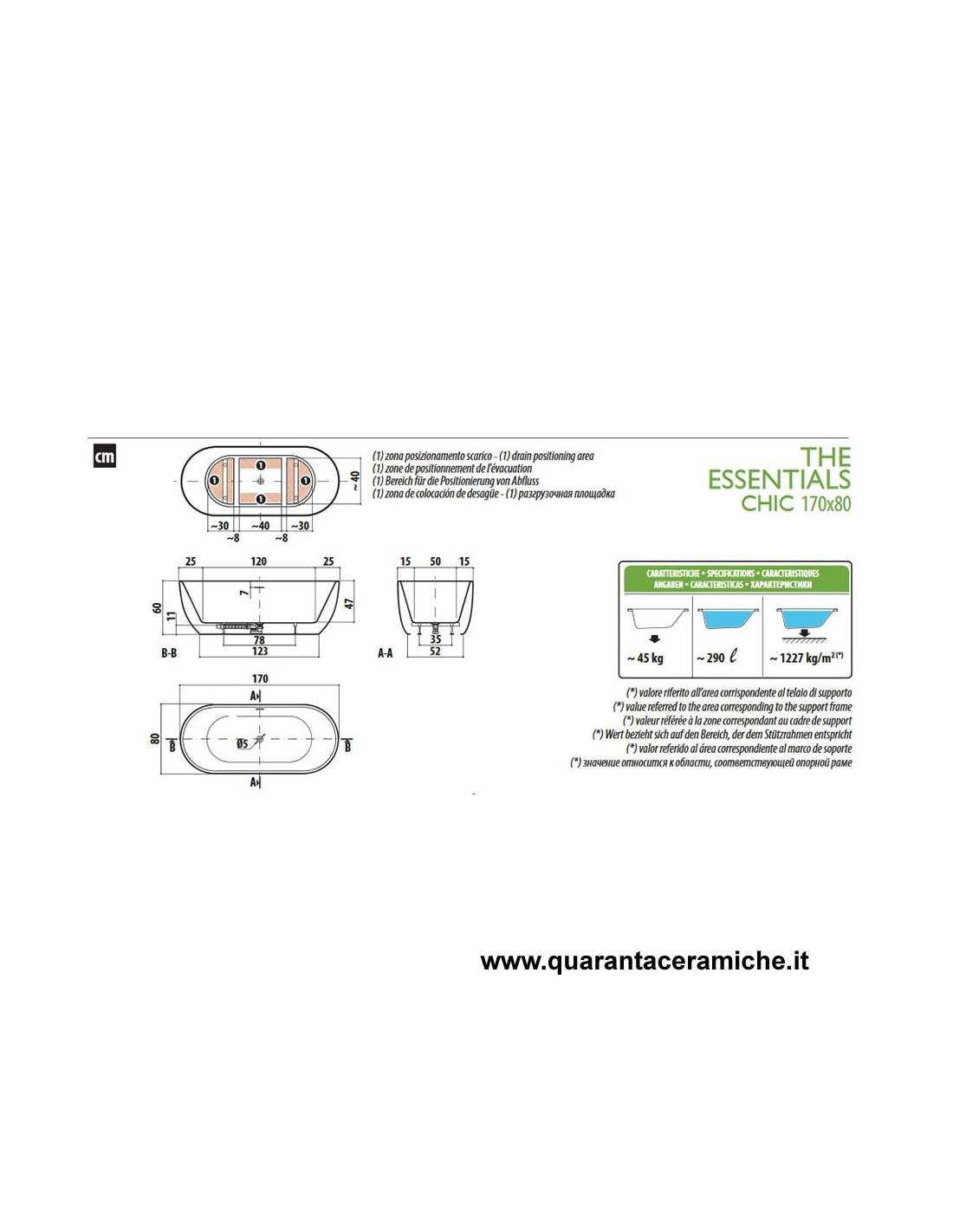 Jacuzzi Chic vasca da bagno freestanding 170x80x58 H cm Art. CHI00000001